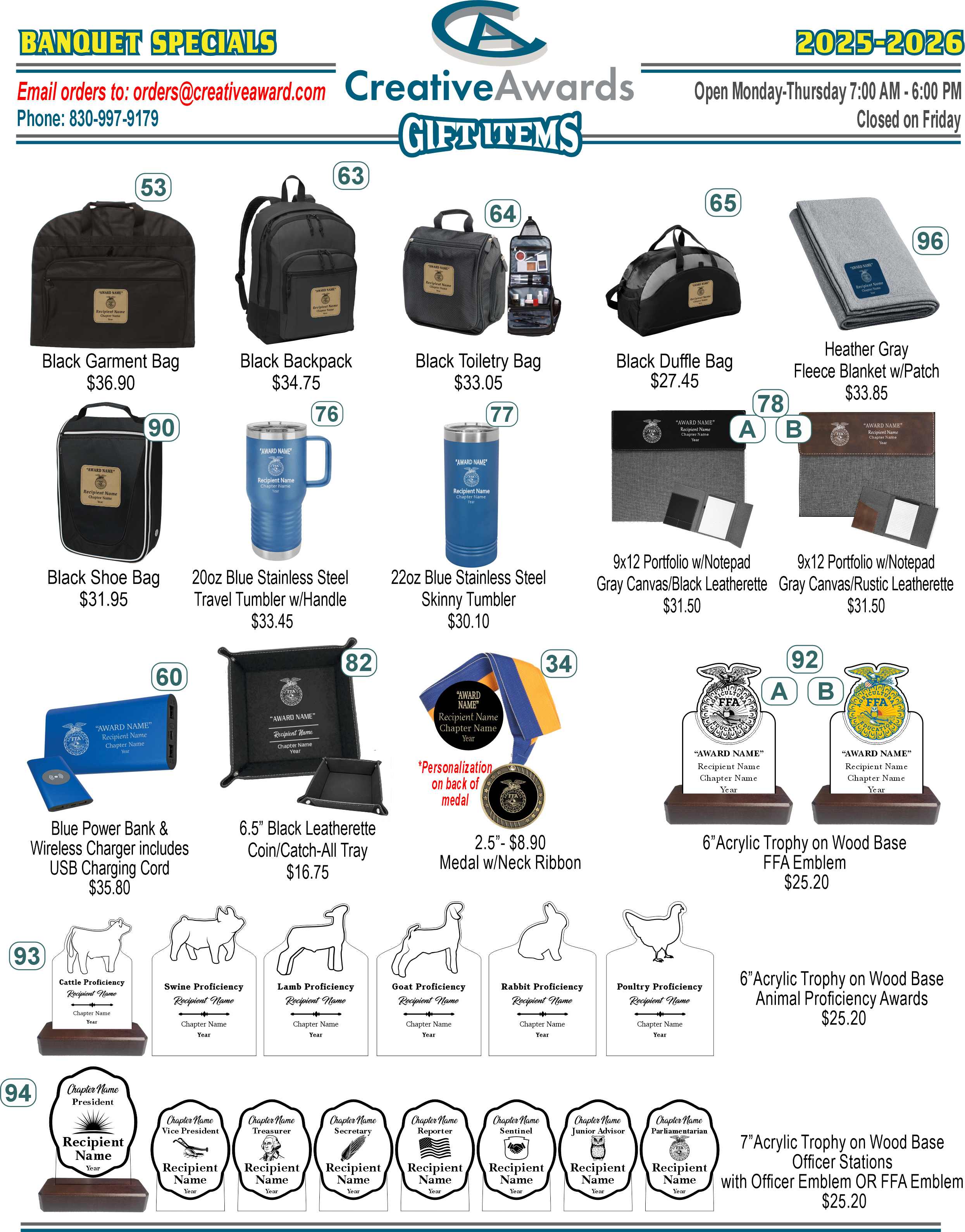 Our team strives for excellence knowing that the awards we produce are encouraging the next generation of youth to do their best in school, livestock shows, and other FFA promoted events.